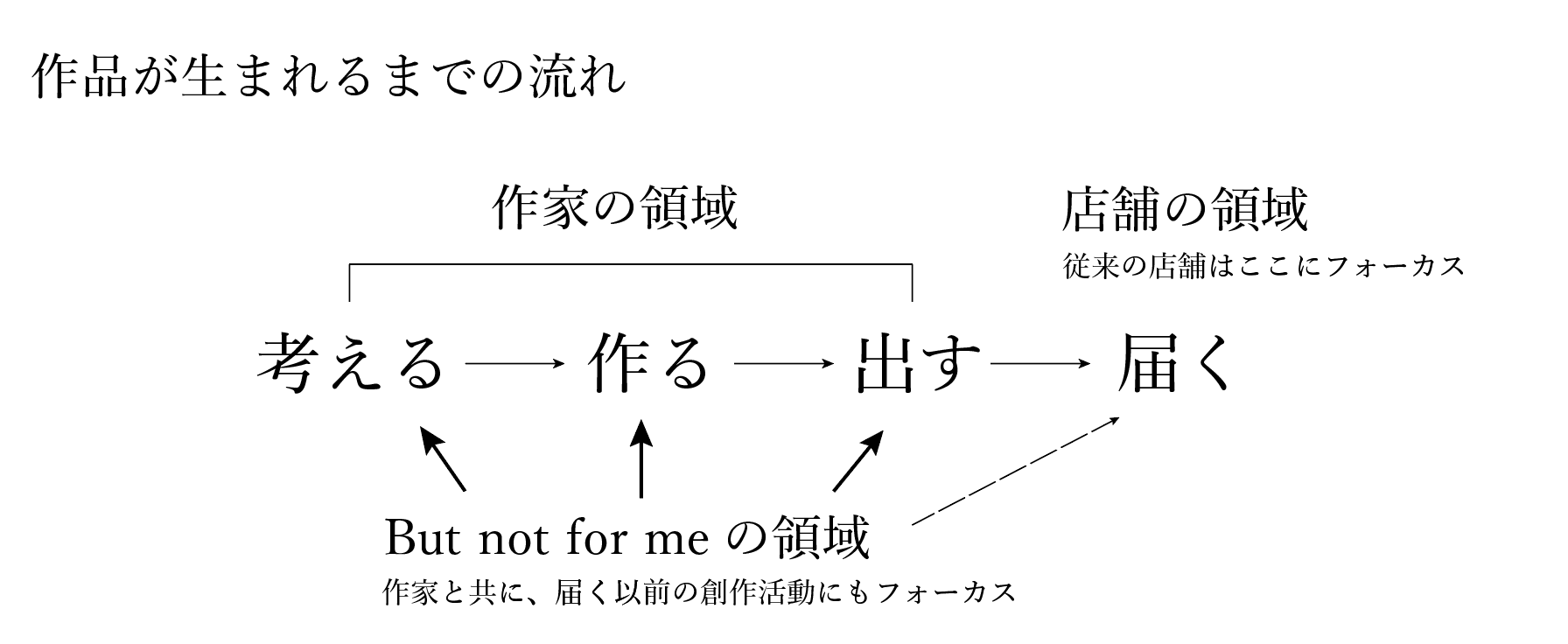 そこからクリエイターが創作活動を続ける事ができるための場所「But not for me」の構想を考えるようになったのです。