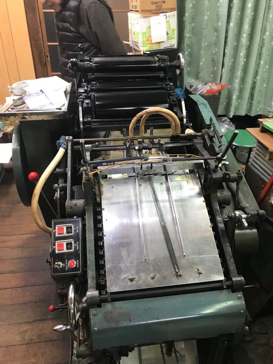 「もうワシも年やから体が動かんようになる前にと思って、末に年賀を刷り終わったら廃業する事にした。やけど道具はまだまだ働ける。。。活版は自分の人生も同じ、、、スクラップにはしとうない引き取ってもらえんか?」