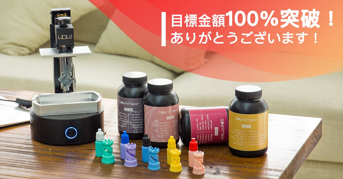 2019/03/06 18:05SparkMaker FHD 支援者の皆様へ、皆様のおかげで、我々のプリンターのキャンペーンが達成いたしました。皆様のサポートのおかげで、成し遂げることができました。心より感謝いたします!この勢いが止まることが無いよう、皆様のお力が必要です!お知り合いの方に私達のプロジェクトを伝えていただけますでしょうか?引き続きよろしくお願い致します。SparkMaker FHD チーム もっと見る