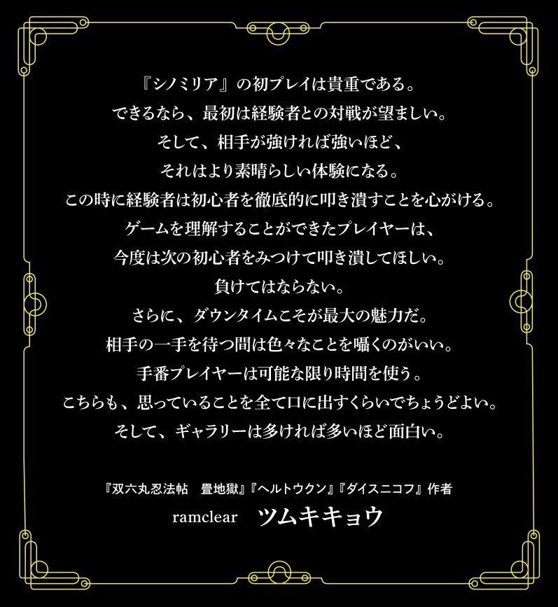 本作『シノミリア』は日本一恵まれてるボードゲームだと思います。