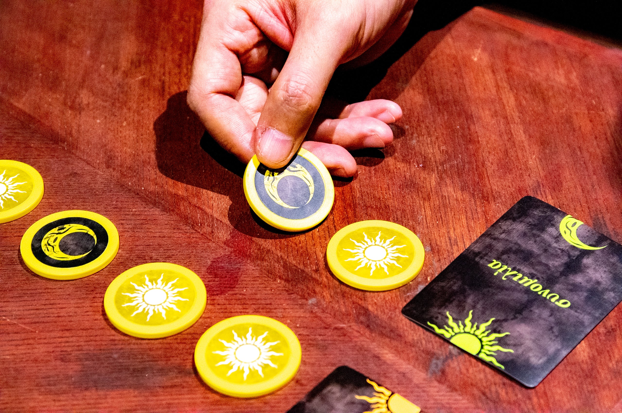 手番には自分と相手がお互いにテーブル中央にチップを1枚ずつ積んでいきます。