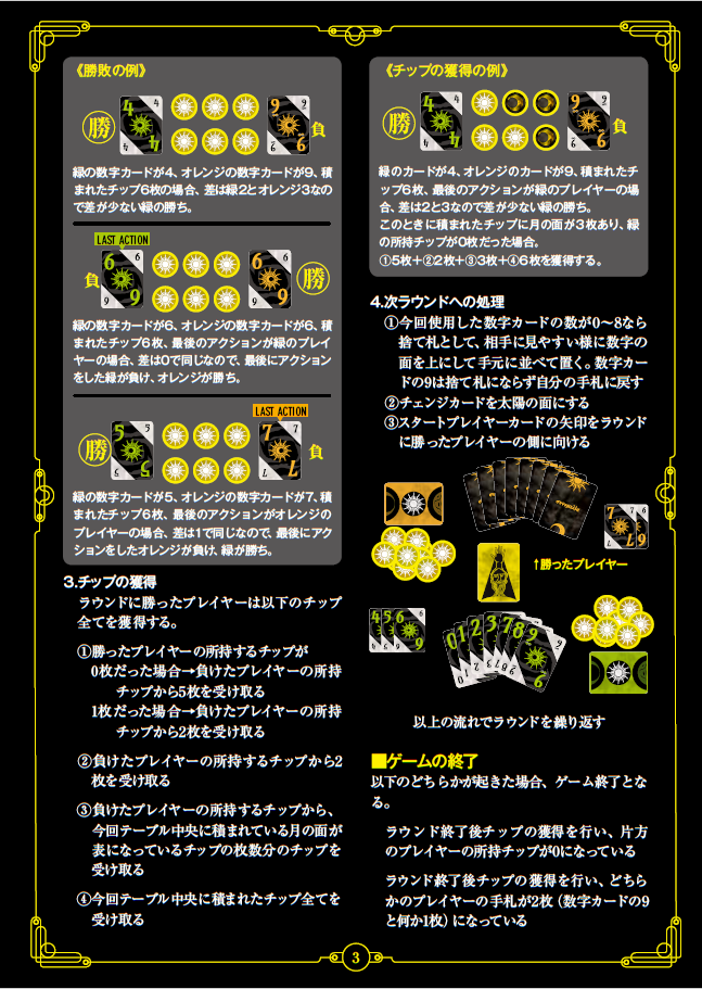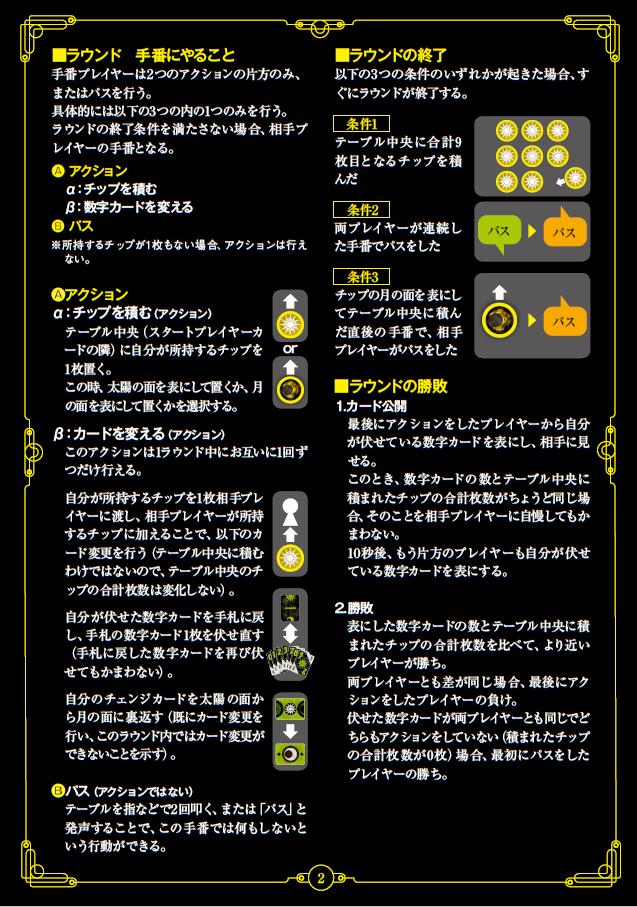 “最後にチップ積む等のアクションをした者が負け、先にパスした方が者の勝ち”