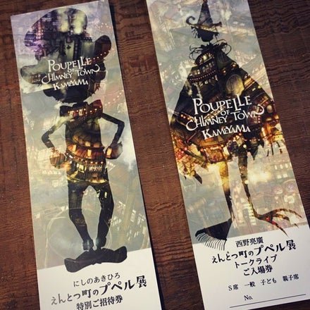 2017/04/08 17:32みなさまこんにちは!プペル展の開催までいよいよ10日となりました。大変お待たせいたしましたが、プペル展の特別招待券、およびトークライブチケットが出来上がりました♪これから順次発送させていただきますので、来週中にはお手元に届くかと思います。届きましたら中のチケットに間違いがないかご確認ください。来週中に届かないということがあれば、お手数ですがこちらの方までご連絡いただければ幸いです。 poupelle.kameyama@gmail.com ちなみに裏面はこんな感じです♪ こちらの素敵なチケットは、22日に出店をしてくださいます「ふじっこぱん」の藤山さんにデザインしていただきました♪到着をどうぞお楽しみに!田端佳織 もっと見る開催日が決まりました!