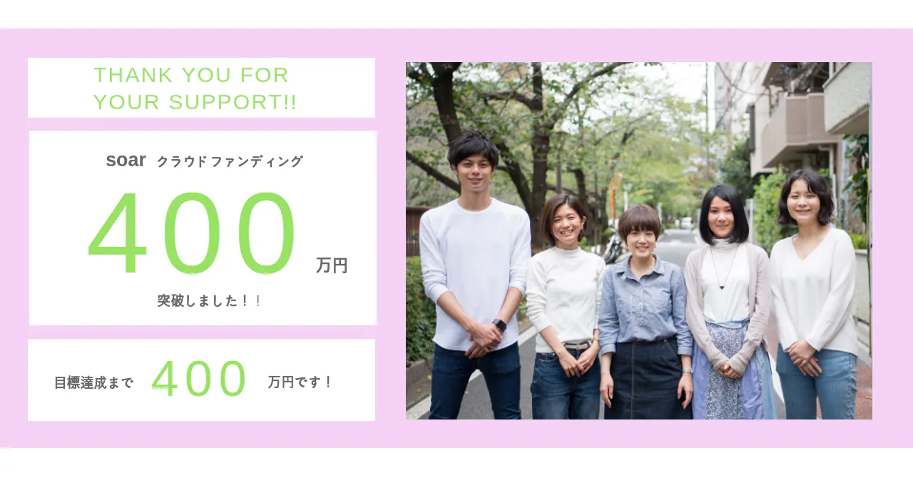 800万円という目標金額を目指し、引き続きsoarメンバー一同頑張っていきますので、ご支援・応援をいただけたら嬉しいです。