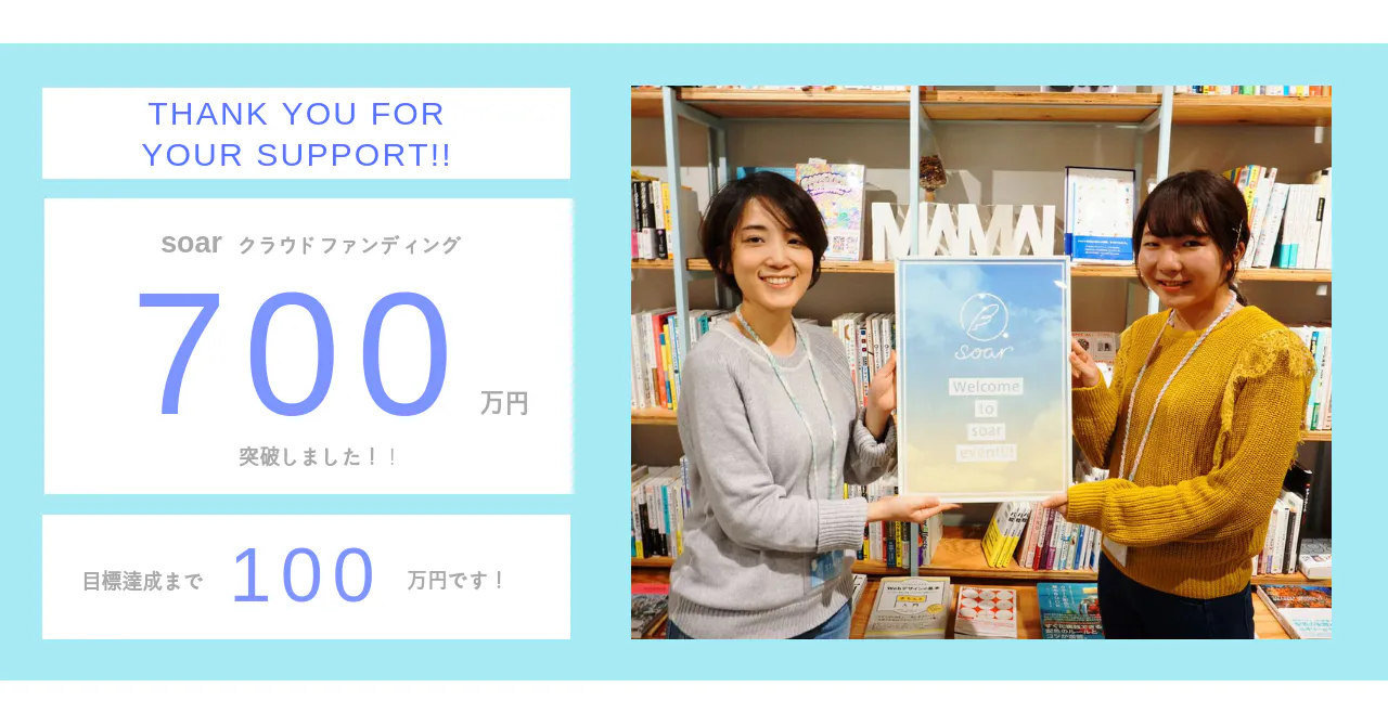 4/25(木)までの残り7日間で目標金額を達成するためにも、soarメンバー一同ここからさらに頑張ります!