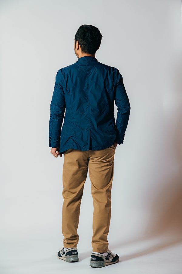 綿チノと比較して【軽い】【乾きやすい】【型崩れしにくい】【シワになりにくい】【色が変化しにくい】【毛羽立ちしにくい】という機能性を持った生地です。