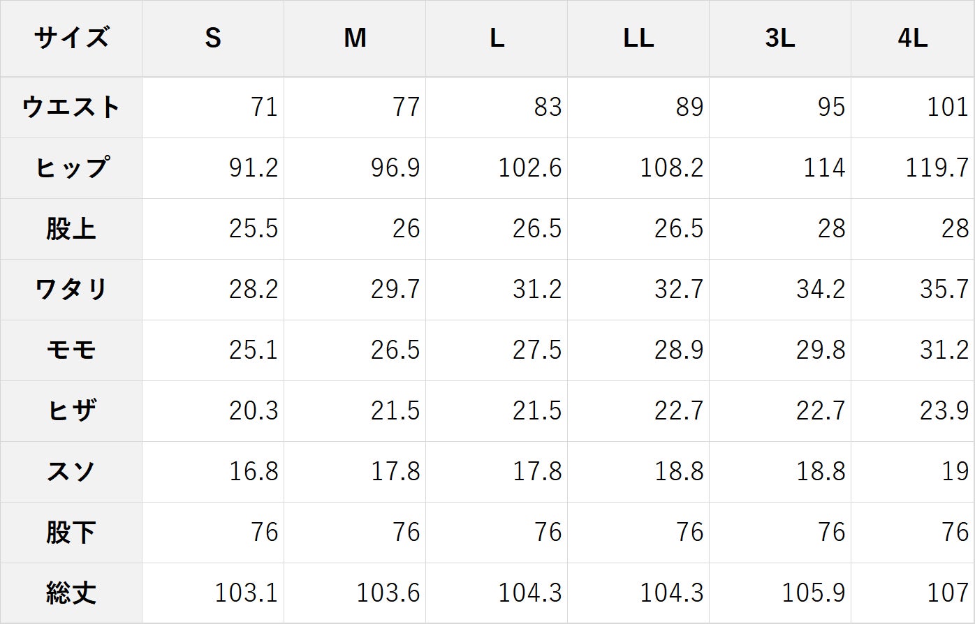 - 生地:ポリエステル63%、綿34%、ポリウレタン3%