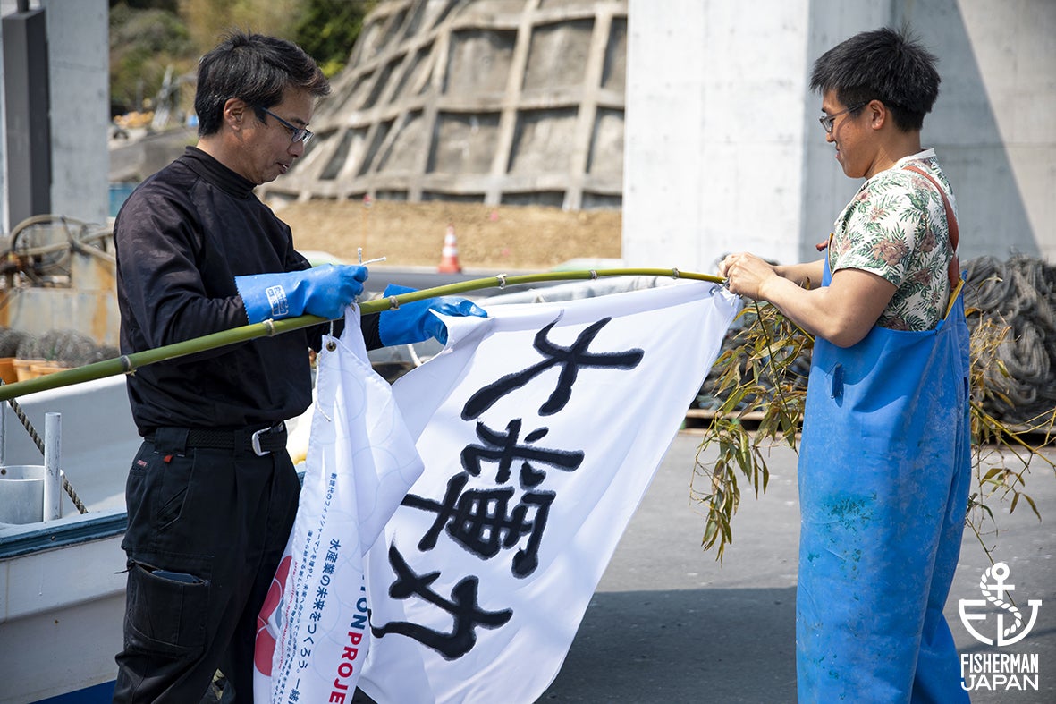 進水式は、通常は新しく造った船を初めて海におろすときに行われるものですが、新人漁師である彼が初めて船を持ったその意味を大切にしたいと、親方のはじめさんの発案で執り行われることになりました。