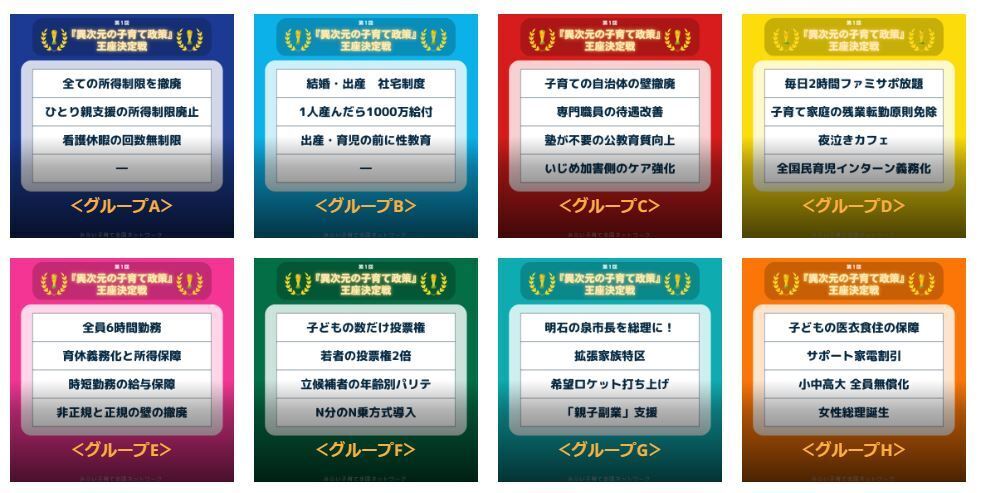 そこで、もっと異次元感出していこうよ!との思いから、新企画「#異次元の子育て政策 王座決定戦」を開催することにいたしました!