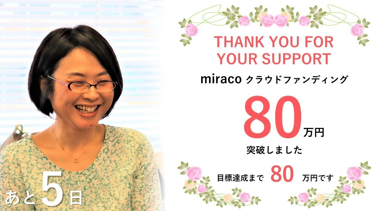 TwitterやFacebookなどでもハッシュタグ「#miraco応援」をつけて、シェアなどをご協力いただけるととても嬉しいです。