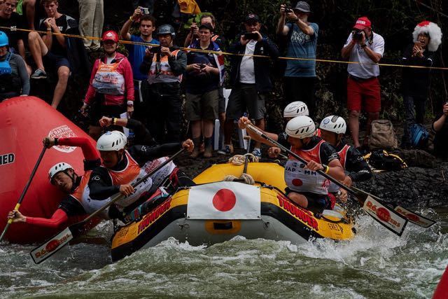 H2H競技とは、同時に2艇発艇して、ブイを回りゴールします。ブイは右岸に2箇所、左岸に2箇所あって右、左1回づつ回ります。ただの早さだけでなく、ボートをぶつけた戦略も優劣に大きく響きます。