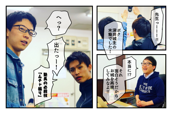 「休み時間のふとした会話をきっかけに自分が深井城主の末裔だと知った瞬間、頭のてっぺんから足のつま先まで鳥肌が立った。しかし、数分後には心の底から熱いものが湧き上がり、深井城の再現を決意した」(安蒜太一)