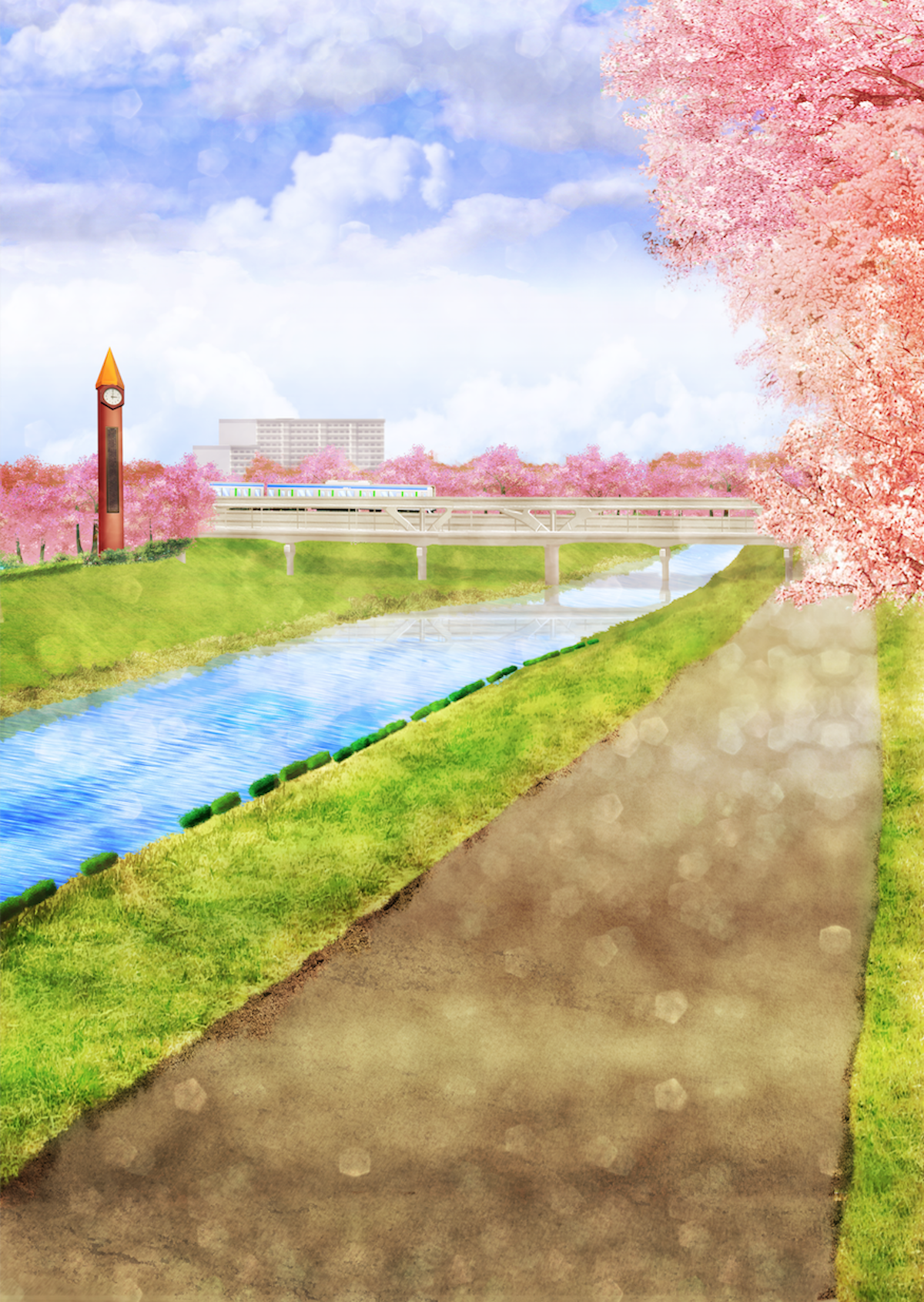 背景には利根運河のシンボル(オレンジの時計台)、アーバンパークライン、東京理科大学の野田キャンパスを盛り込みました↓