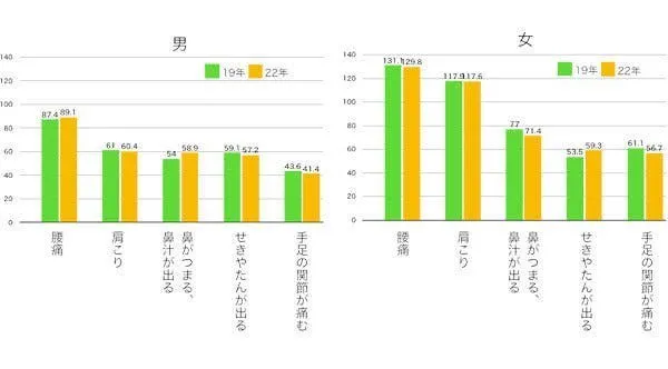 1位 【男性】 腰痛 【女性】 肩こり