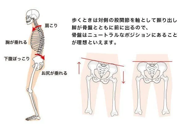 また、歩くときは骨盤だけではなく股関節も大切です。骨盤を安定させるために、脚・股関節から骨盤を調整する構造になっています。