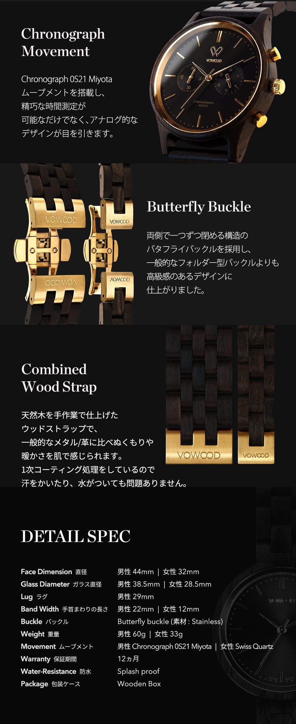 私たちが生まれた一番大きな理由は互いに愛し、愛されるためです。VOWOODのウッドウォッチは皆様の美しい愛をより輝かせるために誕生したブランドです。製品の開発、製造過程からメッセージを刻印する作業、お客様に製品が届くまで、そのすべての過程で皆様の美しい愛が貴重なものとなるよう、あらゆる努力を尽くしております。今まで伝えられなかった相手に対する自分の気持ちをVOWOODに刻んで、愛する人にプレゼントしてください。自分だけの愛の言語が刻印された木製の腕時計は、あなたの恋人の腕で美しく輝くことでしょう。