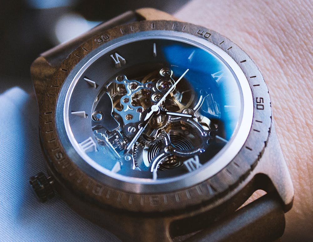 Vowoodのタイムピースは100%天然原木から作られるため、機械で鋳造するように大量生産することができず、ほとんどの製作過程は手作業(Hand-Crafted)で行われます。天然原木の時計はメタル時計と違って自然そのままの素材を利用しているため、「家具」のようなコンセプトを持っているとお考え下さい。同じ原木でも、それぞれ異なる色感、木目、模様、質感の特別な個性を持っており、時間が経つほどタンニングされ、より高級感を増していきます。