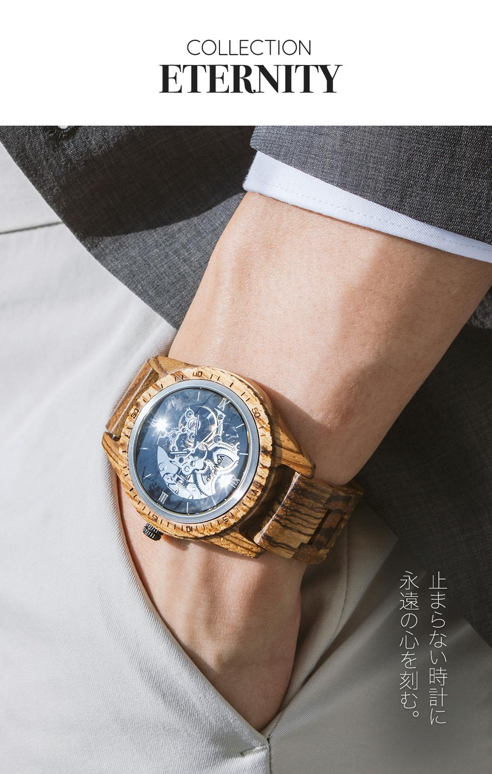 サファイアクリスタルガラスとセルフワインディングオートマチックムーブメントを搭載。5ATM防水機能が追加されたプレミアムウッドウォッチ