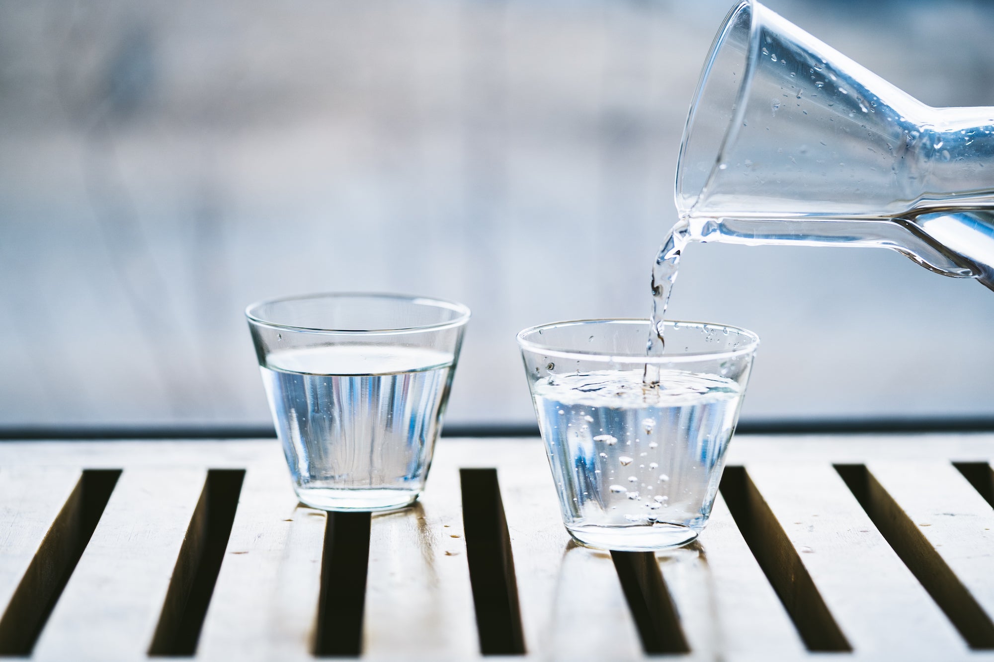 1日1リットルを目安に。暑い時期はペットボトルなどの作り置きを冷蔵庫へ、寒い時期や冷えが気になる方は白湯で。