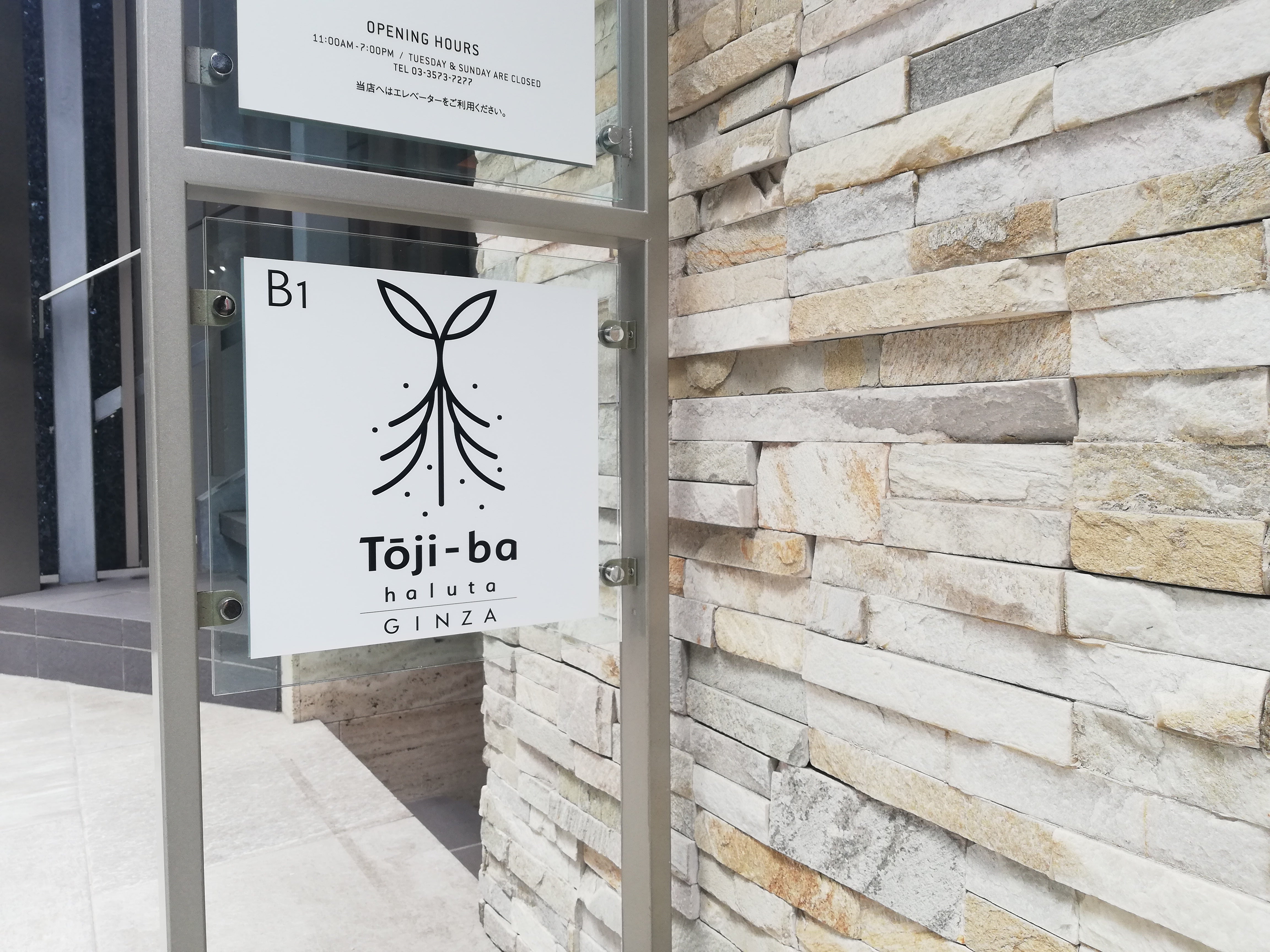 Toji-ba halutaのこのロゴが目印です!横の階段またはエレベーターでB1Fへどうぞ。