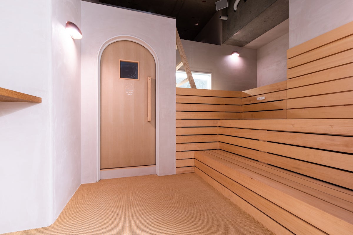 Toji-ba haluta GINZAのミスト室。ここで石風呂ミスト浴をお楽しみいただけます。