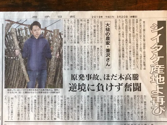 3/20の岩手日報で、原木椎茸に関する内容を記事にして頂きました!
