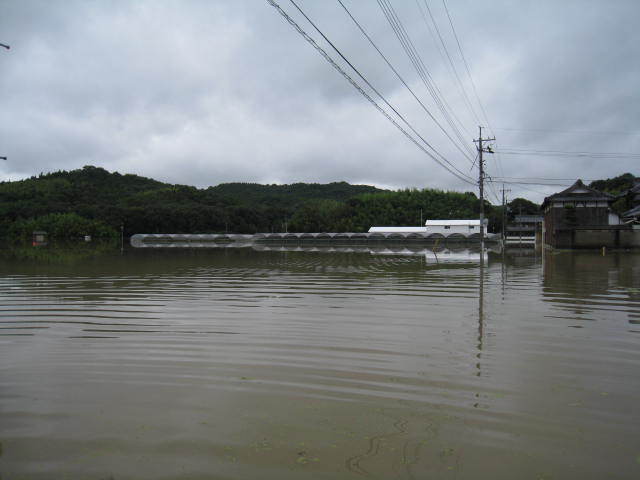 どんな様子なのか昼過ぎに車で出たところ、避難所から少し車を走らせると、そこは辺り一面水浸しとなっていました。