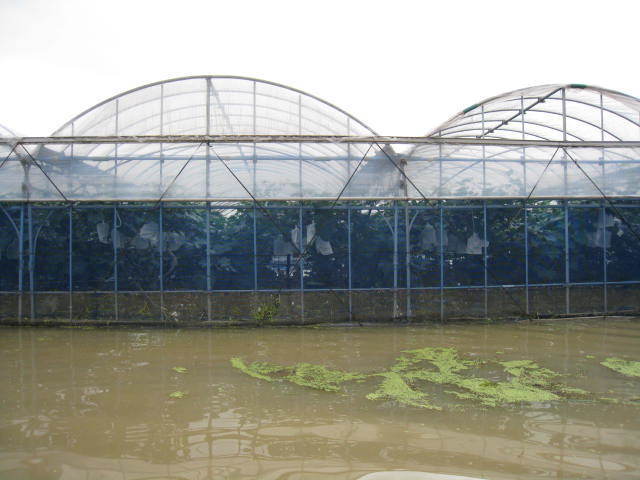 数日後に、完全に水が引いて天井まで浸かったぶどう園の写真です。