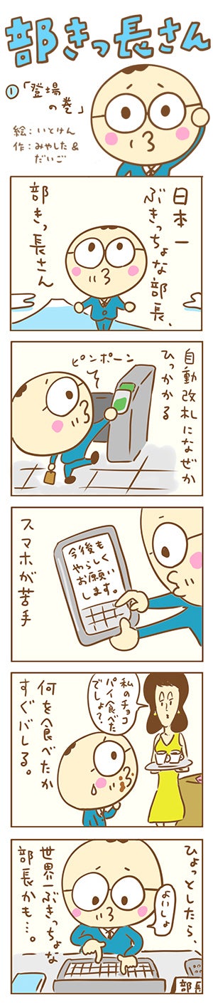 製菓会社に勤める日本一ぶきっちょな部長「部きっ長さん」。会社では、部下や取引先に振り回され、家庭では、母親にいまだに子供扱いされる。でも、彼の周りには、いつも笑いや愛があふれている。男性は部きっ長さんを、自分のことのように応援したくなり、女性は、彼のやさしさに心をいやされる。そんな漫画です。