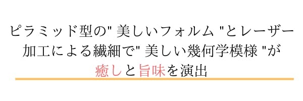その表面には超繊細なレーザー加工技術を駆使したデザイン模様と極微細な抽出孔が無数に存在