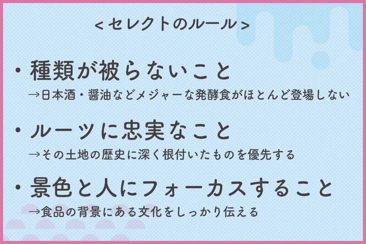Please look forward to seeing what kinds of fermented food have been chosen as a result of this rigorous selection process, which hopely would include a good number of new discoveries and happy surprises to even those who may already be somewhat familiar with this particular food genre!