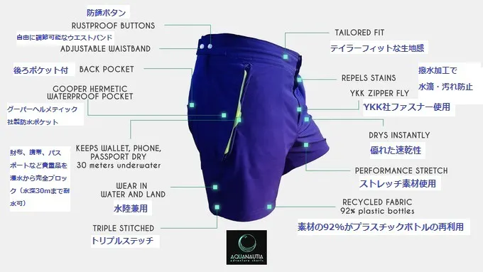 今回ご紹介するのはそんなお悩みを解消する「完全防水ポケット付きサーフパンツ【Aquanautia(アクアノーシア)】」です。