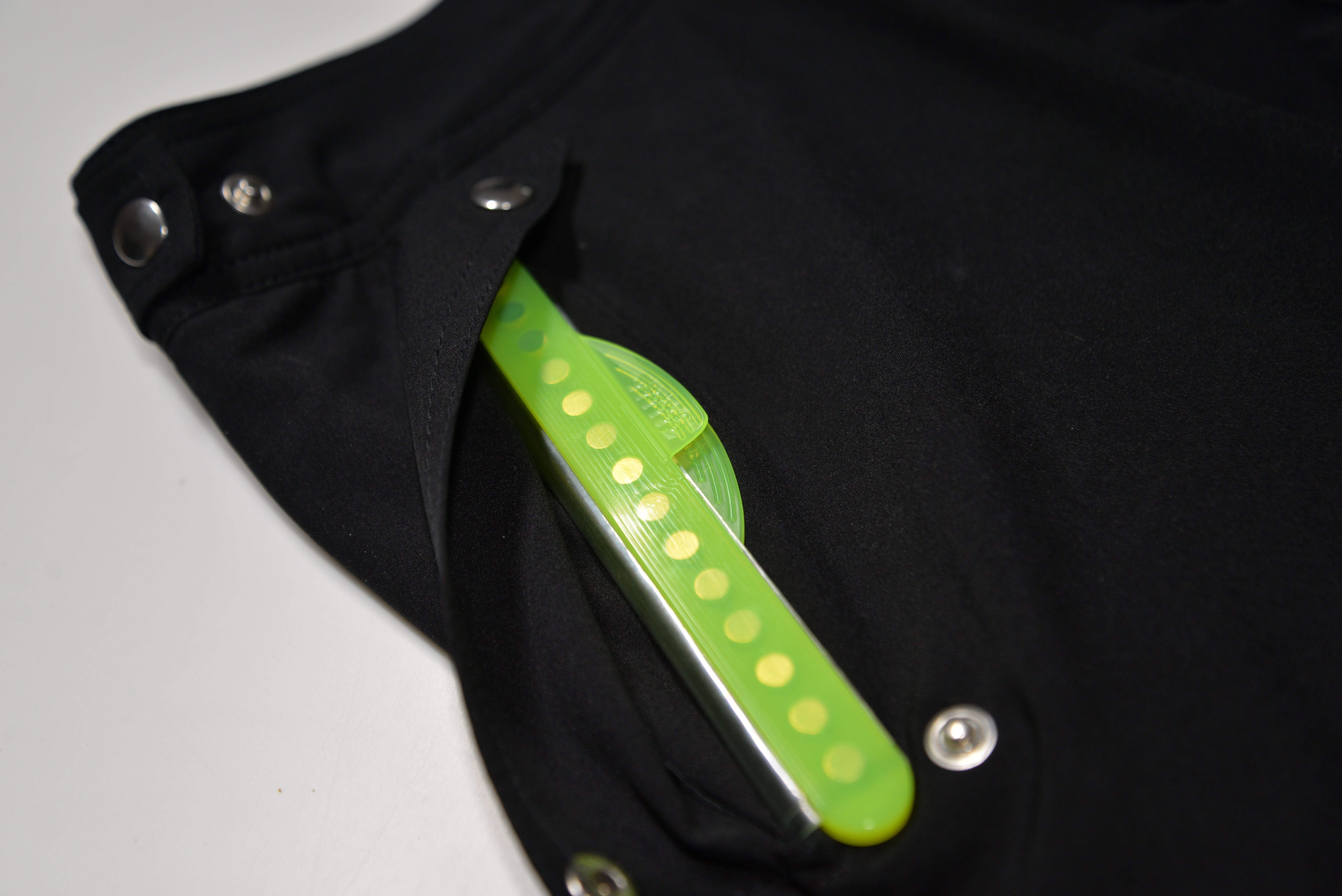 この防水ポケットについては30メートルの水圧下での耐水を含む入念な製品の品質検査を行なってきており、製品、素材の品質、ならびに製造工程には高く自負しております。