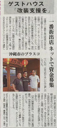 11/20付けの沖縄タイムスに今回のクラウドファンデイングを取り上げていただきました。