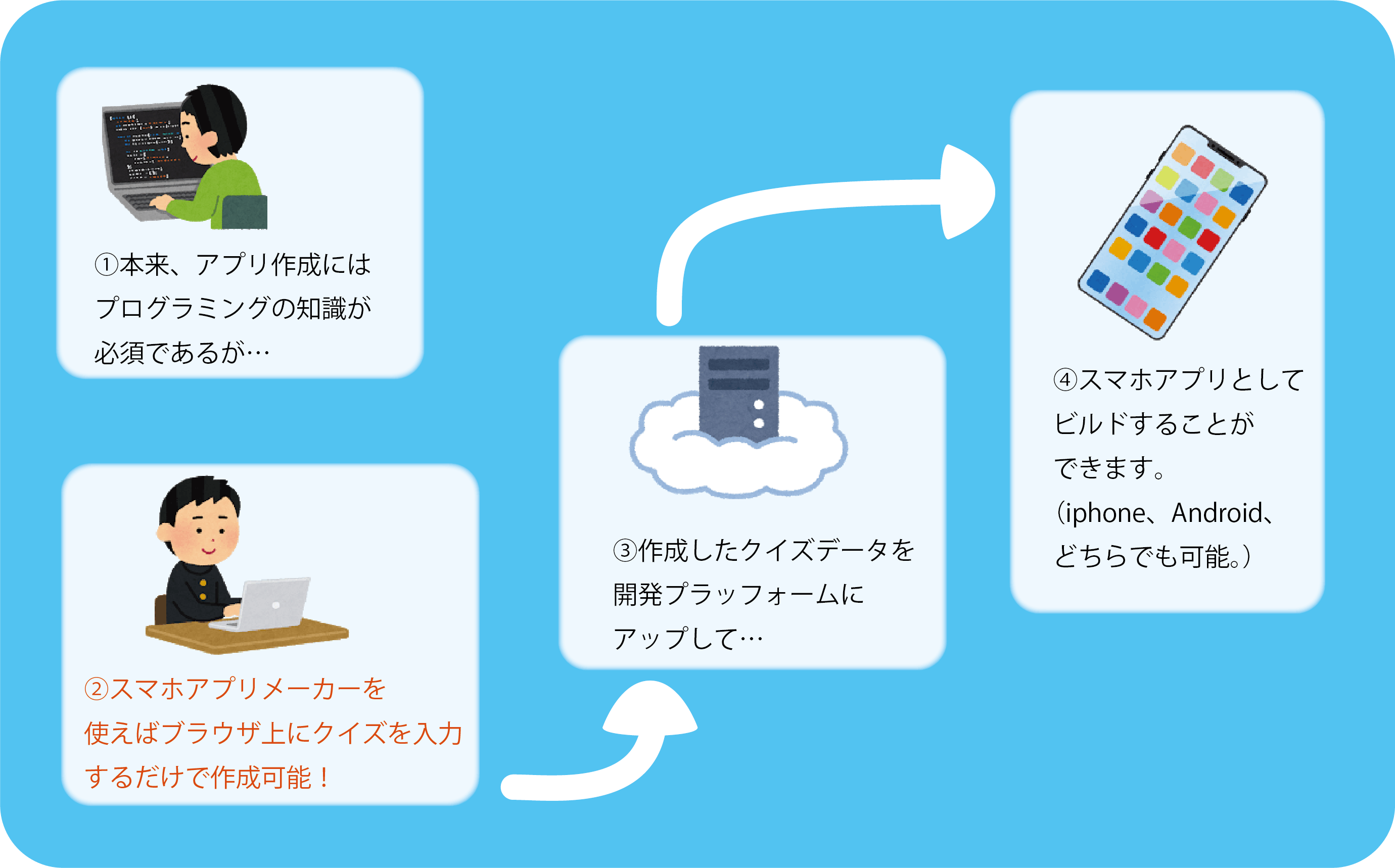従来、スマホアプリを作成する場合は高度なプログラム知識が必要になりますが、