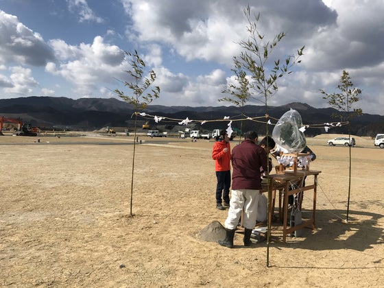 2017/03/16 19:05【くまカフェ応援基金】の続報です!先日3月3日、吹き荒ぶ強風の中、地鎮祭が執り行われました。皆さまからいただいたご支援を「くまカフェの新店舗PRのための動画をつくる」ため、いよいよ動き始めます。 高台造成した場所に入り、地鎮祭の様子から撮影。どのような動画にするかは未定ですが、完成までの道のりはずっと追い続けようと思っています。くまカフェ新店舗は、複合商業施設「アバッセたかた」のすぐ側で、公共駐車場も近く、さらに公園前の好立地です。 現在はほとんど建物もなく吹きっさらしのような状況ですので、風の影響をもろにうけてしまうようです。施工業者さんからは「入り口を引き戸にしようか」なんて声も漏れていました。 くまカフェ応援基金はおかげさまで10個ご用意した返礼品の全てをご購入いただきました。6月中にお送りすることを目標に動いておりますが、工事の状況いかんで遅れる可能性があります。 これから着工となり、店舗の完成、そして返礼品の送付まで、このページでも報告・更新は続けていきます。引き続きご注目ください! ※その他の返礼品につきましても、ただいま準備中です。今しばらくお待ちくださいませ! もっと見る支援者の皆さまへ
