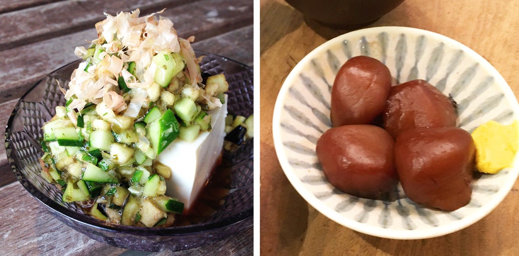 なす・きゅうり・大葉・みょうがを細かく刻み、昆布を加えて和え、ねばりを出した家庭料理です。ごはんにかけたり、やっこやそばにかけて。夏によく食べられます。