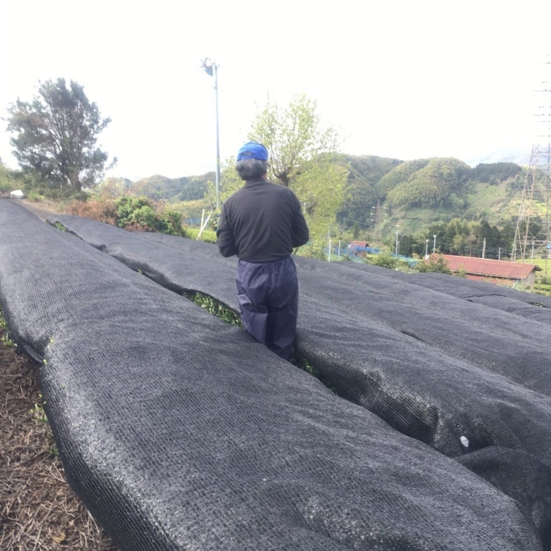 1、寒冷紗が茶葉に直接触れないので風が吹いて擦れることがない。(風で擦れると茶葉に傷がつき黒く変色して色と風味を損ないます。)