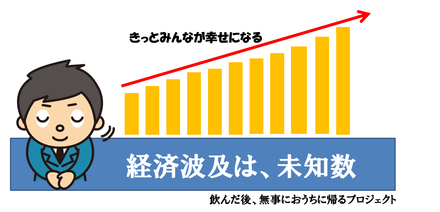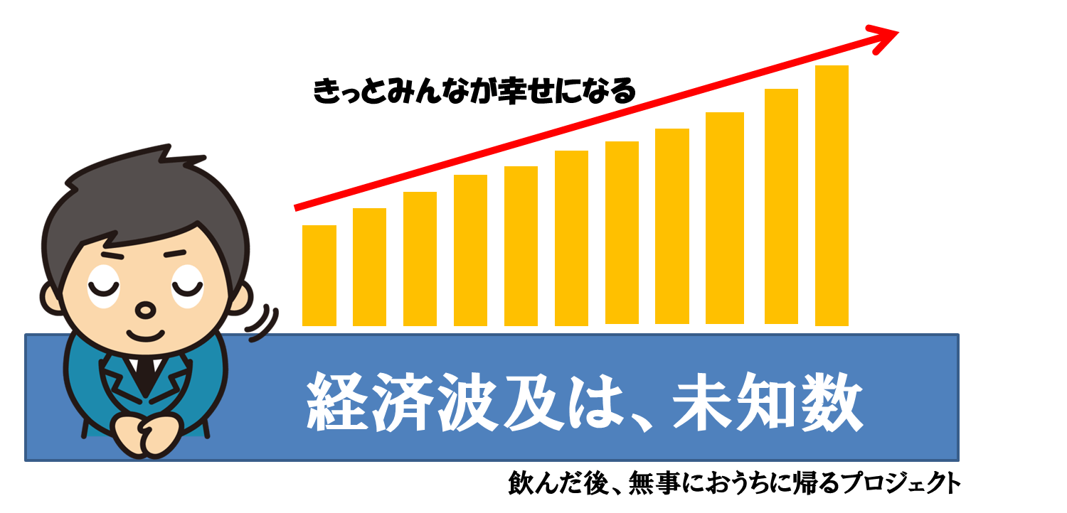 プロジェクト成功によって、生み出される新たな雇用、待遇改善、設備投資、人材投資規模の策定と、飲酒後に車を置いて帰る場合に利用される宿泊施設、有料駐車場の利用増加。タクシー、運転代行業者、各公共交通機関の利用増加に伴う、経済波及効果の予測。