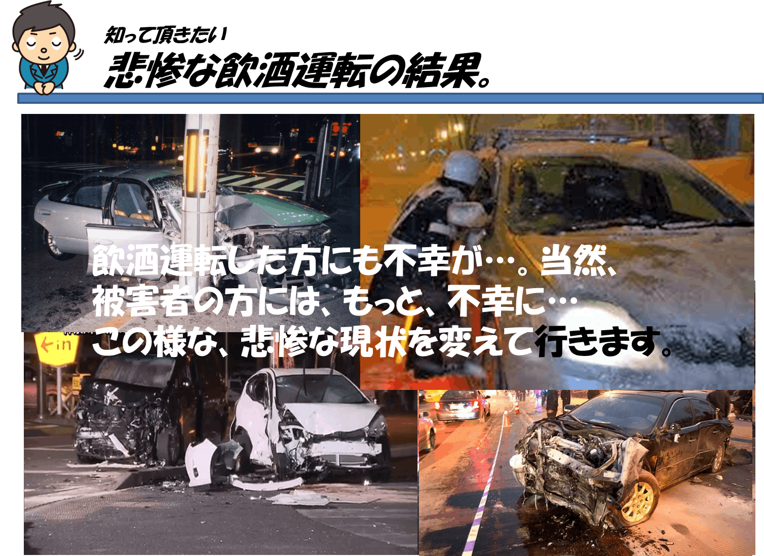 お酒を飲んだ後に、ちょっとだけ意識をするだけで、飲酒運転は、確実に過去の時代になっていくでしょう。そう信じています。