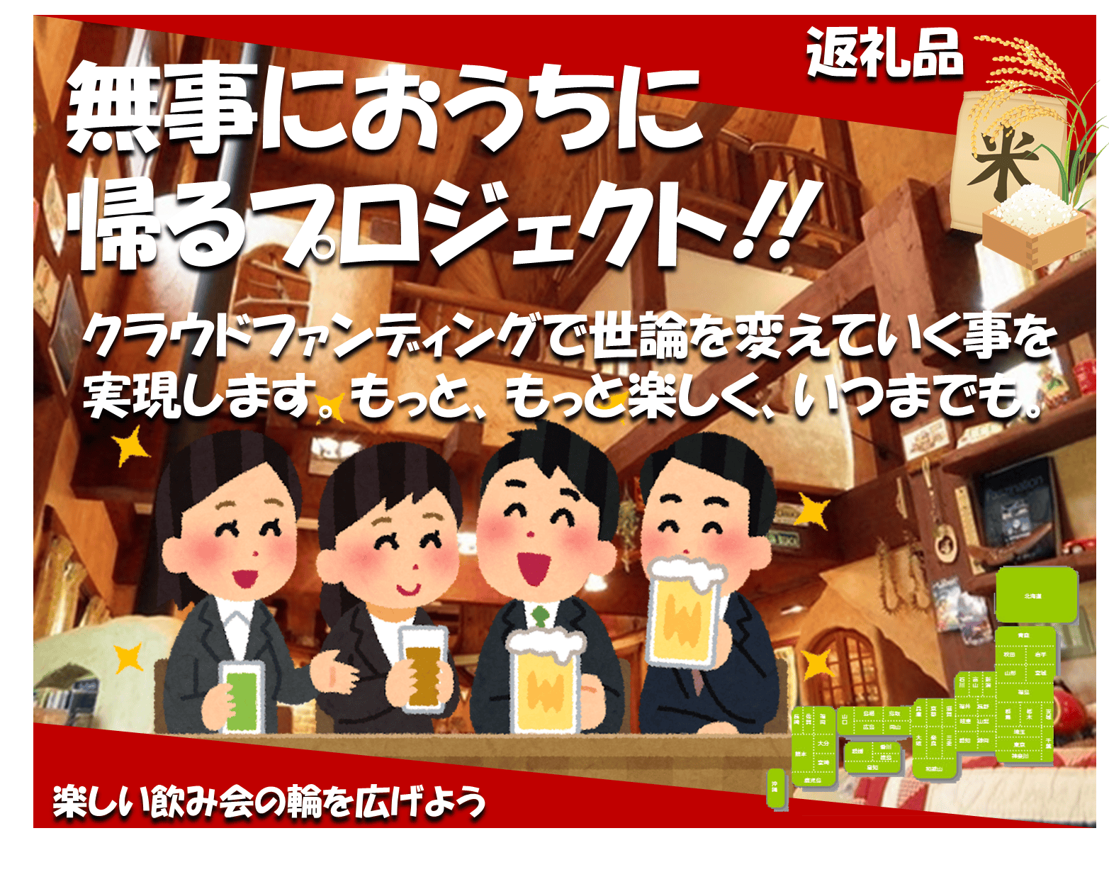 2019/05/15 04:48お酒を飲んで無事にお家に帰るプロジェクト。閲覧ありがとうございました。活動の幅を広げようと行っておりました。少しでもお役に立てたのであれば幸いに思います。活動の中で様々な方よりご意見を頂戴いたしました。その中には、当然賛同できないという声がありました。そのご意見を貴重なお気持ちとしていただきました。仰る通り、飲酒運転を失くしていくには、長い活動が必要だと実感いたしました。クラウドファンディングで活動資金としてご支援を頂くには、私の力不足でした。でも、日本国内で飲酒運転に対して対策を考え、活動していらしゃる多くの方々がいる事も今回の機会に知る事が出来ました。その団体の方々は独自の基金を寄付で行っていることです。今後の私は、自己資金の限界まですでに飲酒撲滅活動を行っている方々の後方支援で頑張っていきたいと決意しています。今回、クラウドファンディングを通していただいた経験は大変貴重なものです。開設から現在という短い期間でも、痛ましい飲酒事件、飲酒事故による死亡事故、ひき逃げ事件が多数多発していました。お亡くなりになられたご本人には、突然人生を奪われました。ご遺族の方々には、生活も奪われました。報道では、1分前後の案内ですが、当事者は一生の不幸が突然に訪れました。ご家族からは加害者を一生許すことはありません。しかし、飲酒運転の死亡加害者には有期刑が科せられますが命までは奪われません。正直遺族感情は、加害者が生きて生活する事に憤りを感じています。できれば加害者の人生も奪ってやりたい。というのが本音でしたそれはそれは厳しいものでした。見方を変えて、加害者側にも、突然の収監で社会生活を失っています。飲酒をしてたので怖くなって逃げたっという身勝手な気持ちで逃げた犯罪者という事を背負います。ちょっとした軽はずみな考えから犯罪者へっというよりも、飲んでも自分は大丈夫と考えていた人が多く、やばいやってしまったっという、たまたまついていなかったという声が多く、驚愕します。その犯罪者は無事にお家に帰ることが出来ませんでした。話は少しそれますが、国民を代表する国会議員、芸能人でも、お酒を理由に失言や暴行など多く取り上げられました。はっきり言ってお酒が悪いのではない。普段からそう言う方なんだと世の中の人は、疑っています。なんでもお酒のせいにする。自分自身は本意でないと。飲酒運転事件も同じでした。お酒を飲んでも無事に帰る。その方法を選択せず、身勝手で人の人生を奪った犯人に1ミリの同情もありません。桜の季節で多くの飲酒犯罪者を見ました。いつか大きな事を起こすだろうと確信しています。あまり、深く飲まなければ大丈夫。でも、次はあなたの番ですっと申し上げたい。今一度、子供には、悪いことをしたらごめんなさいと教えるのは大人の人です。でも大人なのに子供には叱っているのに、世の中、飲酒運転が横行しています。情けないですね大人なのに。言い方は厳しいですが、違法薬物導入で自動車事故を起こした人と飲酒事故は対して変わりません。ごめんなさいで済まされないからです。どうぞ、飲酒運転はやめてください。お前にそんなこと言われたくないっと言う方には、とても残念ですが、事故を起こしたときは必ず救護措置をしてください。意識がなくても、助かる命はあります。決して逃げないでください。日本の警察は立派です。絶対あなたを許しません。防犯カメラ、ドライブレコーダー解析は高度な時代に成ました。その覚悟を持ってハンドルをを握る前に考えてください。短い期間でありましたが、飲酒運転撲滅の機会に参加させていただきありがとうございました。 御礼 高橋俊幸 もっと見る