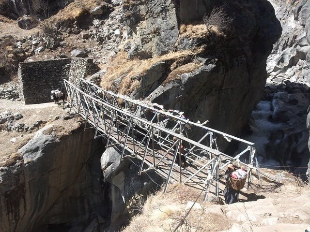 通常は険しい山道を歩くしかなく、荷物を運ぶのにもポーターに任せるしかありません。