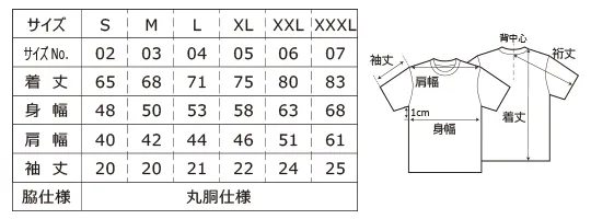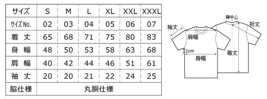 <T-shirtサイズ表>