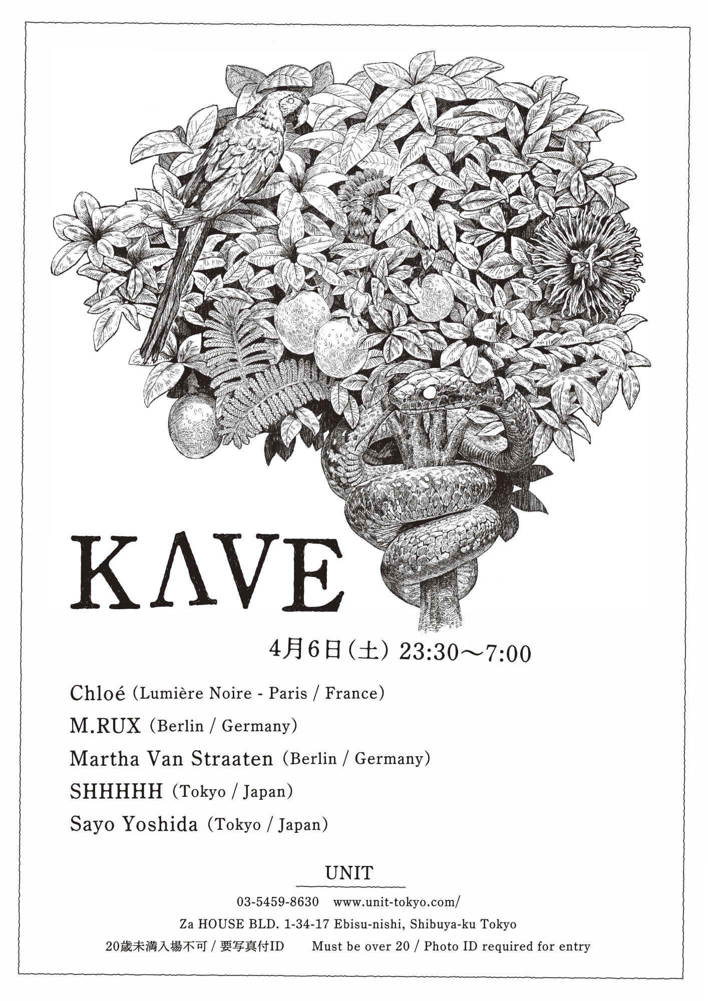 ※KAVEという名前は、イベントのイメージである洞窟内の楽園「Cave」と、イベントの大切な要素である「Techno/Technology」を組み合わせた造語です。