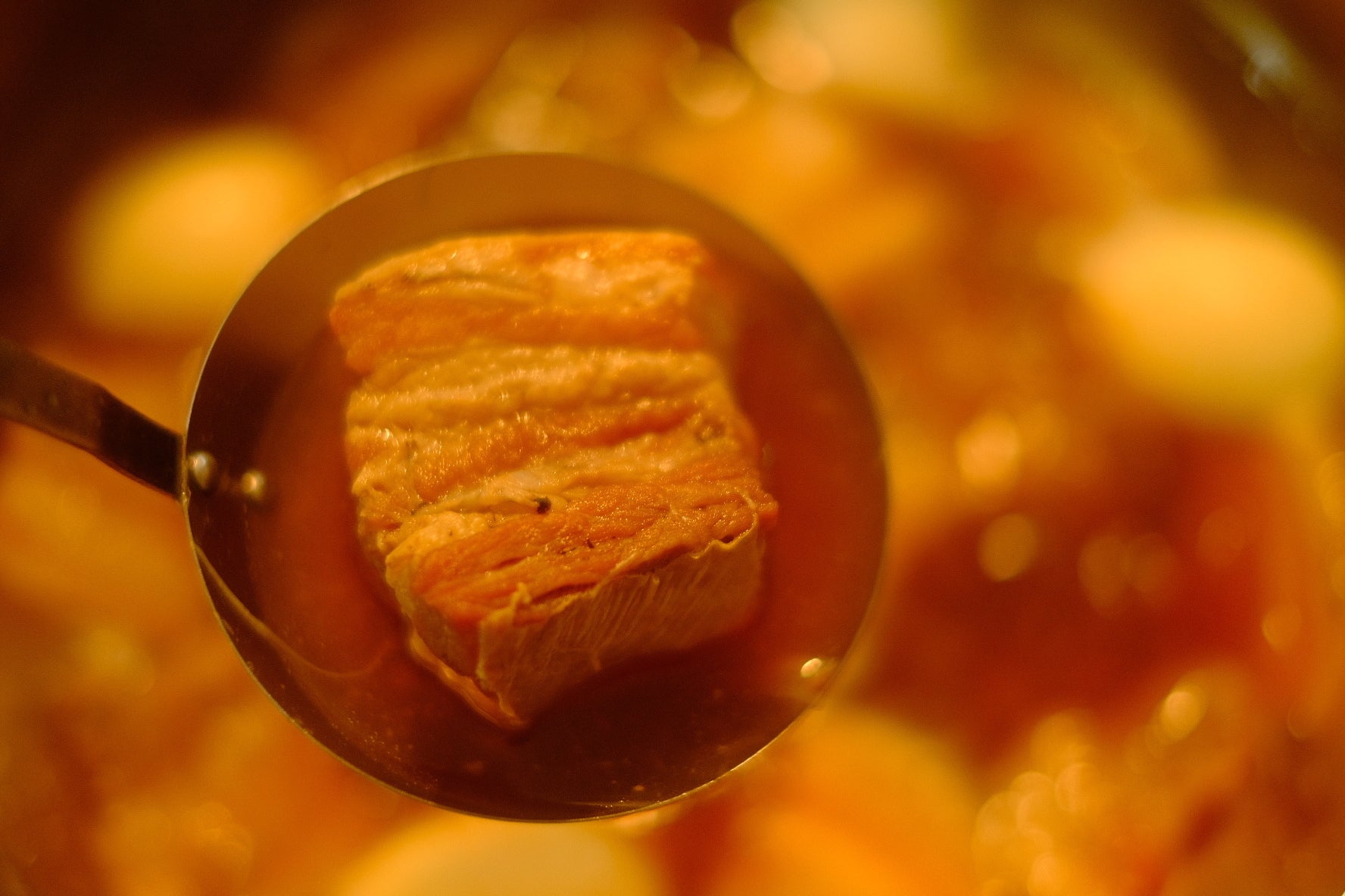 その豚肉をふんだんに使い、豚脂から旨味のエキスを抽出した豚角煮カレー