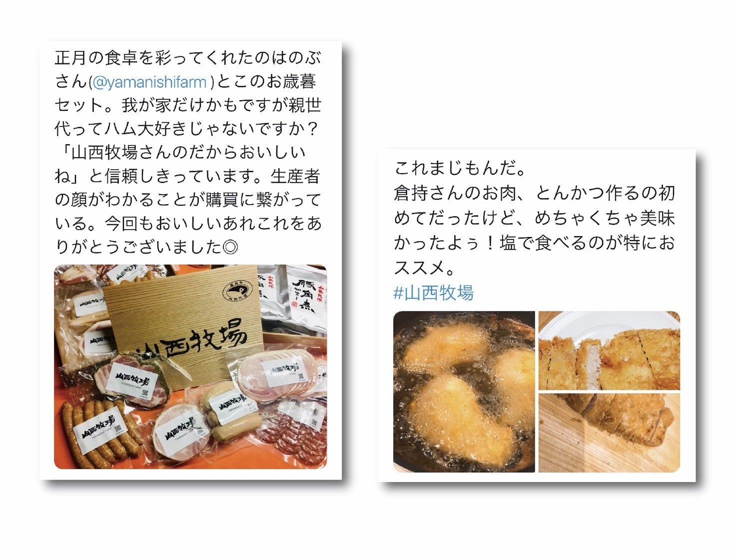 現在、「山西牧場」の名を冠した豚肉や加工品は、信頼を持ってお出ししている一部産直やスーパーをのぞいてはほぼ自社直販のみに絞っています。