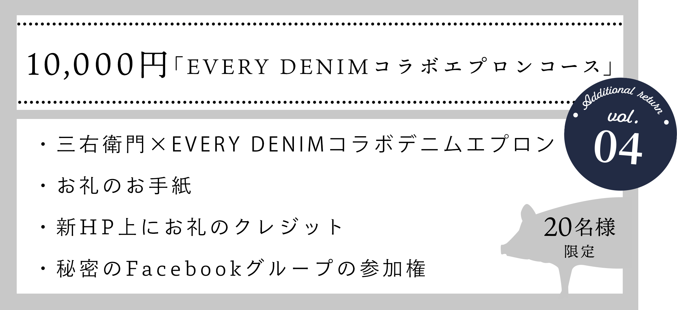 EVERYDENIMさんとコラボしたデニムエプロンをリターンにお出しします。