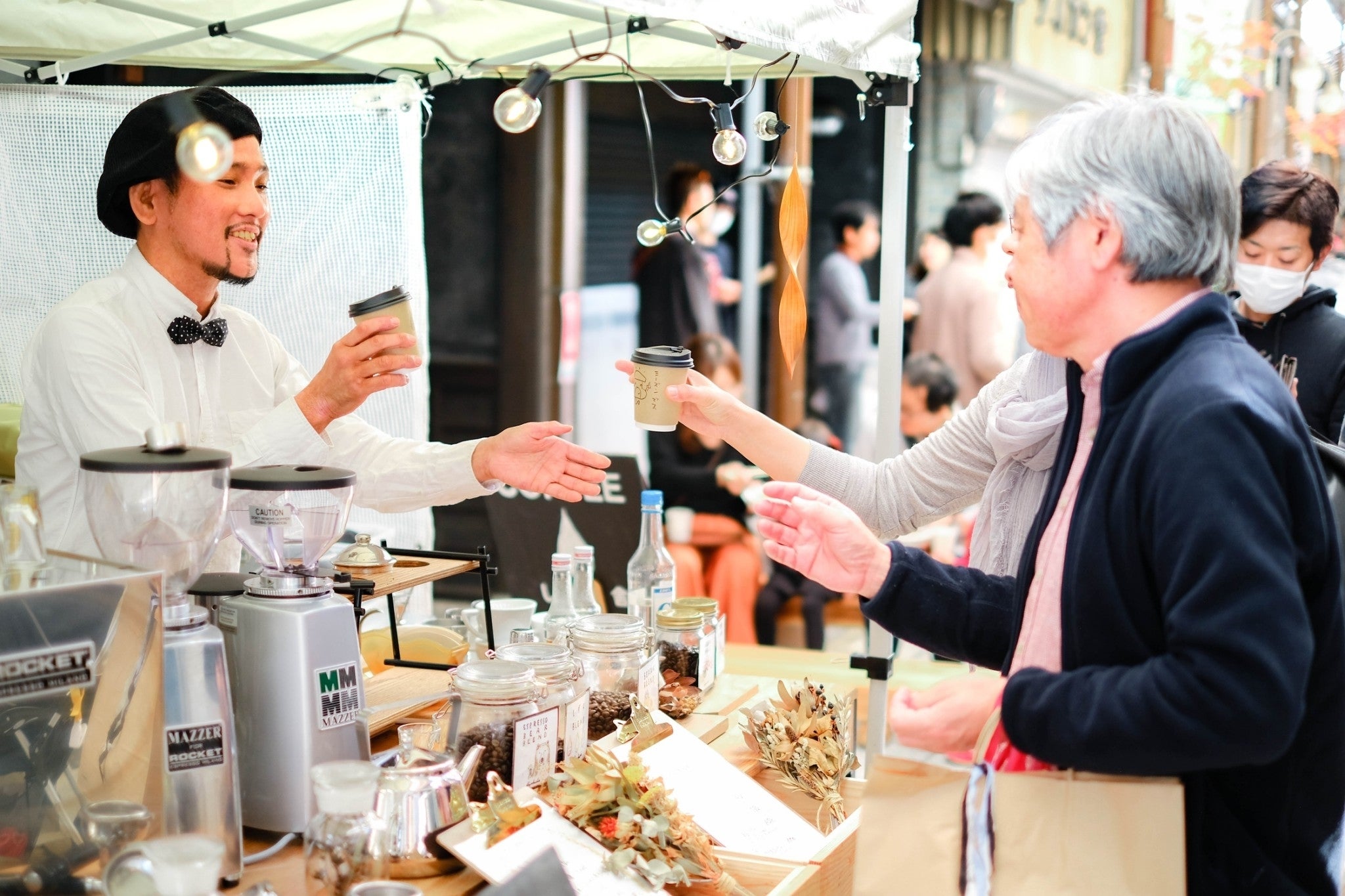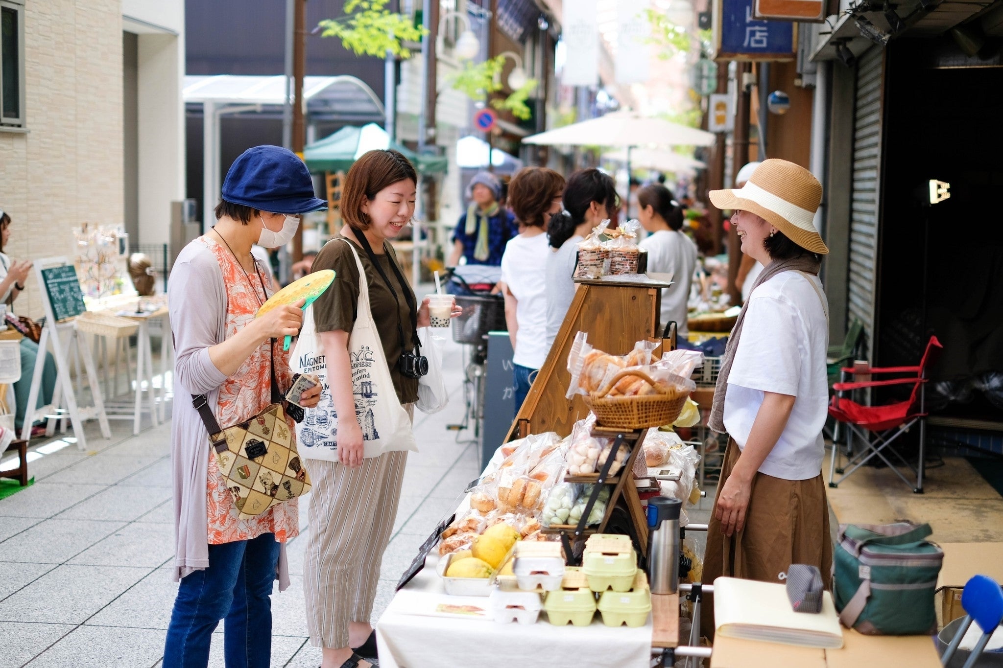 ここに集う常連客がいつしか顔見知りになり、やがて「この通りをもっと楽しくしたい。面白いまちにしたい」などと会話を始めていきました。「この街には定期市がないので手作りやこだわりのお店を集めたマルシェイベントをやってみよう」と動き始めました。