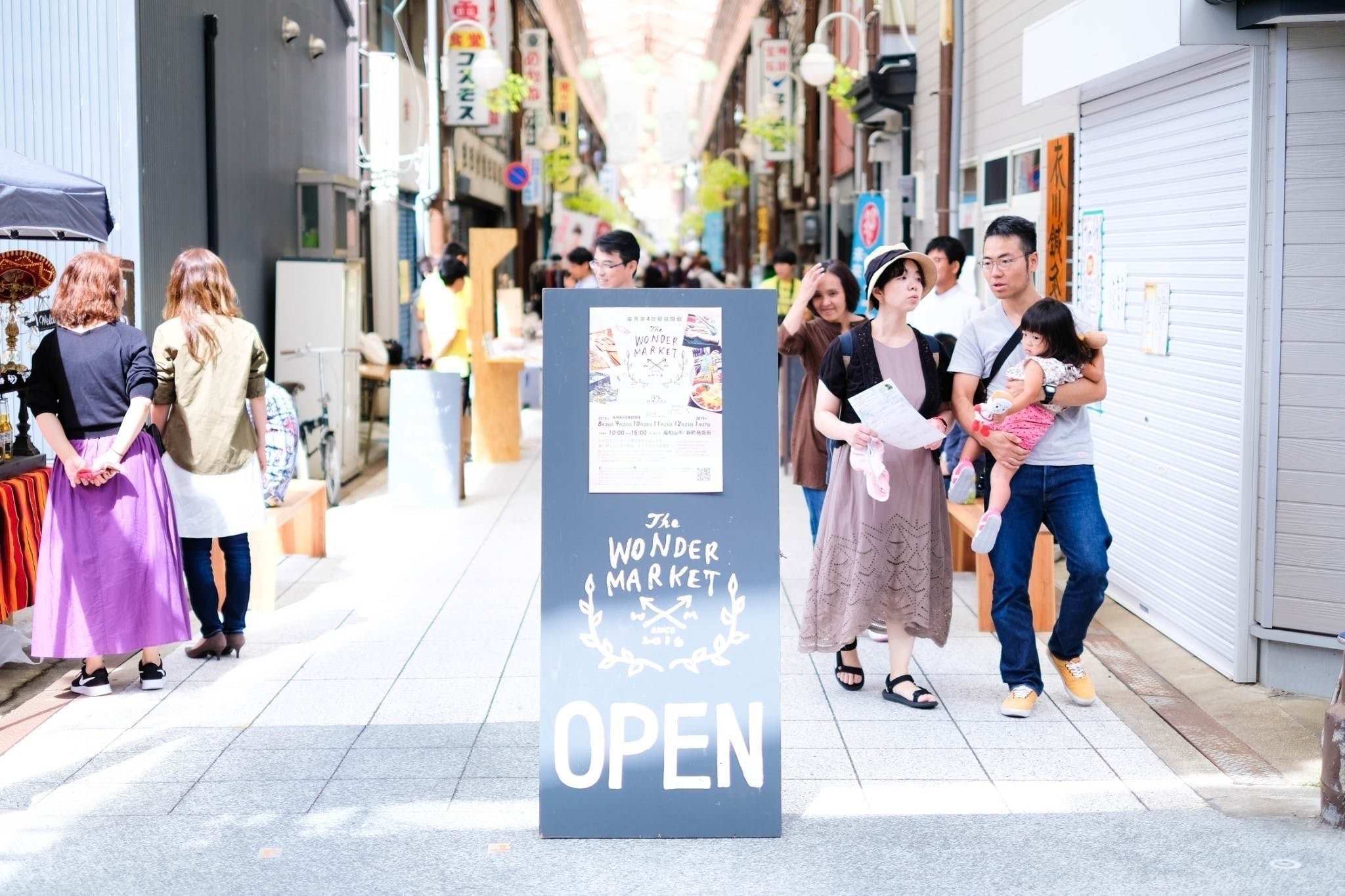 毎月第4日曜日のマーケットで賑わう商店街。でも日常はシャッターが降りたままです。