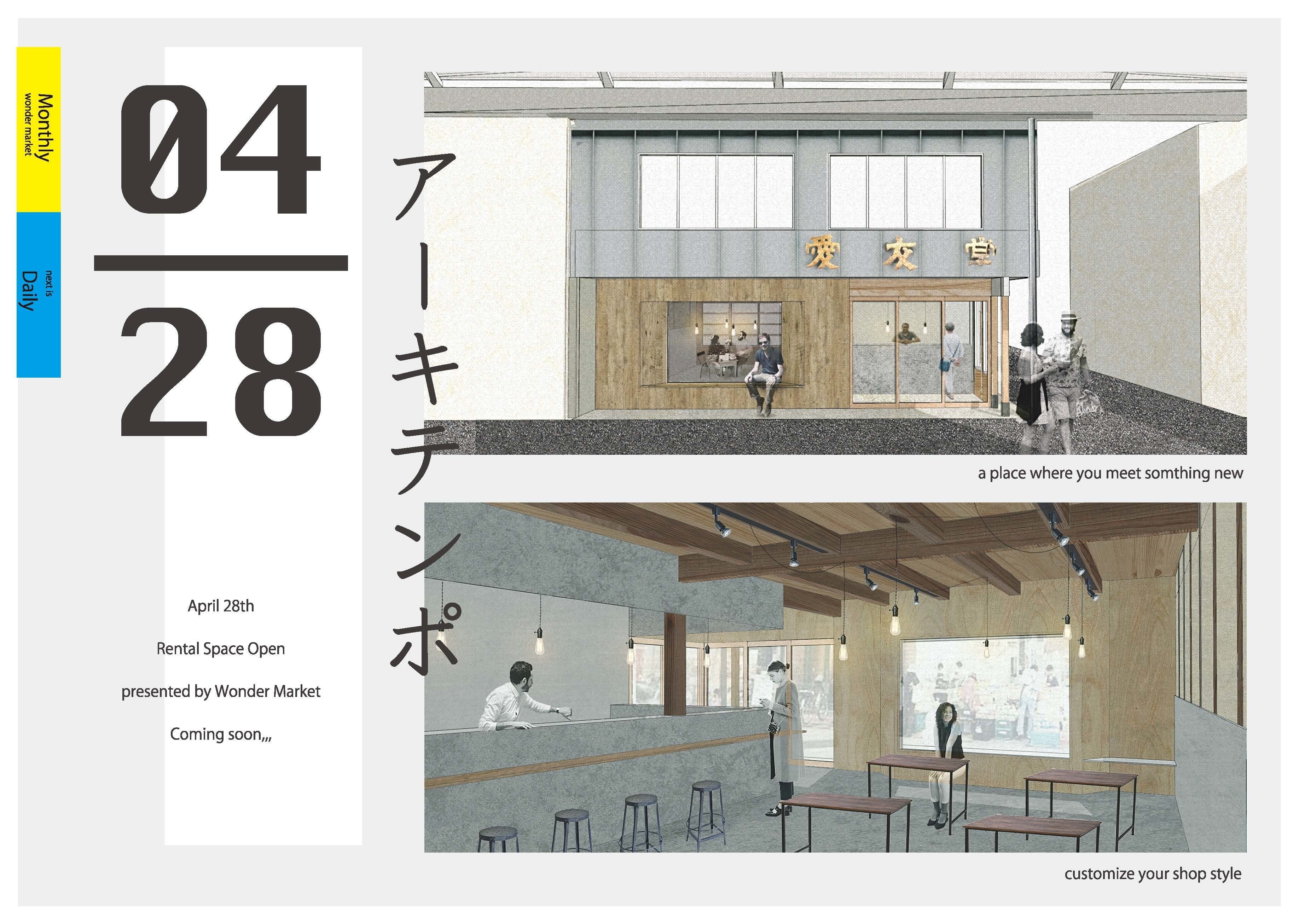 2019/06/25 23:43CAMPFIREにてご支援していただきました皆様へ拝啓貴下ますますご清栄のこととお喜び申し上げます。この度は福知山ワンダーマーケット実行委員会が企画した厨房付きレンタルスペース「アーキテンポ」にご支援いただきまして、誠に有難うございました。遅くなりましたが、順次リターンの品物を送付させていただきます。ご笑納いただけたら幸いに存じます。まずは福袋を送付させていただきました。Tシャツ・バックを追って送付させていただきます。お名前の記入についてもメールにて案内させていだきます。また、谷口教授による町歩きツアーは第1回を開催させていただきました。こちらメールにて案内行っておりますので、まだご覧いただいていない方はメールのご確認お願いいたします。【梱包作業の様子】さて、今回のアーキテンポプロジェクトですが、4月20日の募集最終日を終え、目標金額を達成し、無事完成を迎えることができました。4月28日にお披露目を行い、その後、福知山ワンダーマーケット出店者を中心に利用者のヒアリングを進め、6月より本格的に始動しました。日常的に通行客が少ない商店街の一角を使うことで、誰もお客様が来ないかもしれないという一抹の不安を抱えながらのオープンでしたが、これまで毎月第4日曜日に開催してきた福知山ワンダーマーケットの関係者やファンのコミュニティが多く訪れていただいており、日常的にもお客様を集めることができるかもしれないという希望の光を垣間見ることができています。今後はアーキテンポの運営を進めることで、起業したい方々がチャレンジできる環境を整え、次の一歩を応援することができればと思っております。【アーキテンポは角地にあり、窓を設置して開放的な空間に】【シャッターはベンチ空間を兼ね備えた大きな窓となり、外と内をつなぐ空間に設えました】【店内は30席の飲食可能なスペースとしています】【ワンダーマーケット の延長で商売ができるよう、入ったすぐのところにカウンターがあり商品やお金のやり取りをする露店の延長にあるお店としています】【定期的に週に1回以上使ってくれる人で埋め、隙間を1DAYレンタルとしています】「アーキテンポ」のロゴも建築設計と同じく京都工芸繊維大学の学生にデザインしていただきました。<デザイナー>宮本結以さん<コンセプト>建物を模したロゴタイプを制作しました。空き店舗といえば、シャッターが降りているイメージがあります。このロゴでは、グラデーションの縞模様を描くことで、閉じられていたシャッターが開けられる様をイメージしています。またロゴタイプは伸ばし棒を _(アンダーバー)にすることで、アキ=空きという意味合いを強めたロゴタイプを採用しています。字体は少しレトロな雰囲気を出しながら古すぎないイメージで組みました。今後も福知山ワンダーマーケットを通じて、京都の田舎町のレトロ商店街を盛り上げるよう挑戦していきます。皆様にも温かく見守っていただければ幸いです。この度はご支援有難うございました。敬具令和元年6月23日 福知山ワンダーマーケット実行委員会一同 もっと見る